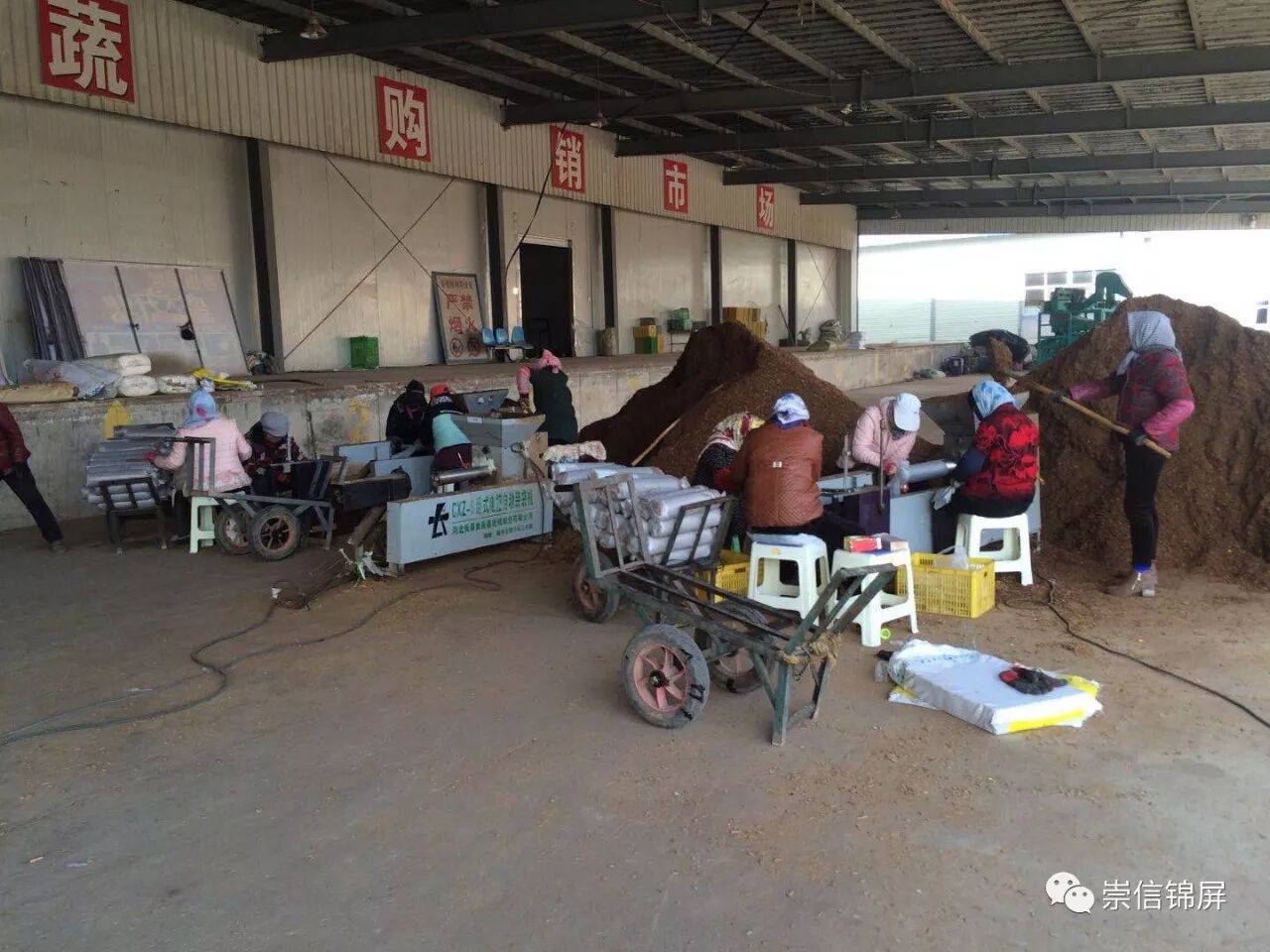 在菌棒生产车间,工人们正在给菌带打包。据了解,生产菌棒的原料包括木屑渣、玉米芯等,这些原料使用后还可以作为有机肥料二次利用,进而减少农作物秸秆造成的污染。